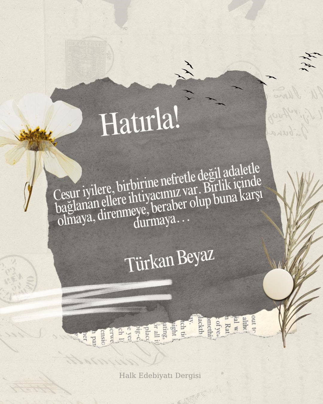 Dilerim insanlık bir an önce uyuduğu bu zalim uykudan uyanır, silkelenir ve savaşlar son bulur. Cesur iyilere, birbirine nefretle değil adaletle bağlanan ellere ihtiyacımız var. Birlik içinde olmaya, direnmeye, beraber olup buna karşı durmaya… Ama bizi öylesine paramparça ettiler ki; herkes kalbinde o kadar kin, öfke ve nefret biriktirdi ki nasıl yeniden “biz” olacağız, inanın ben de bilmiyorum. Bu coğrafya, her daim “yenildi” dediklerinde dirilen neslin evlatları ile dolu. Umarım herkes bir gün bunu gerçekten kalbinden hisseder. Çünkü unutturdukları her şey bizi yok etti; tutunup sarıldıklarımız ise hatırladıklarımız. Hatırlamak, unutturmak isteyenlere karşı en büyük güçtür. Hatırlayın, olur mu? Zira sadece hatırladıklarımızla birbirimize yeniden tutunabiliriz…